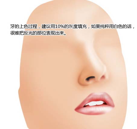 9.牙的上色過程,建議使用10%的灰度填充,如果純粹用白色的話,很難把反光的部位表現出來。