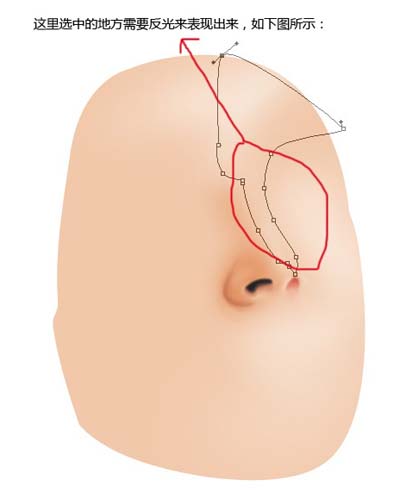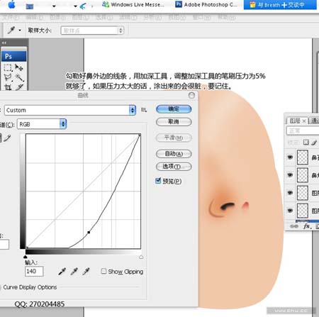 3.勾勒好鼻外的線條,用加深工具(壓力為:5%),開始加深。