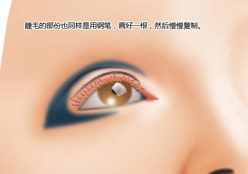 17.睫毛的部分也同樣是用鋼筆,話好一根,然后慢慢復制。