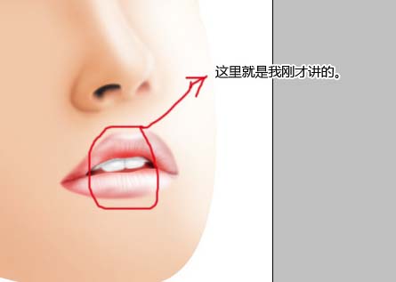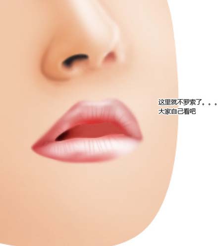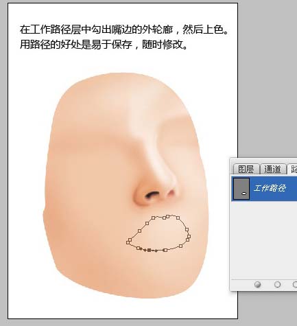 5.在工作路徑層中勾出嘴邊的外輪廓,然后上色。用路徑的好處是易于保存,隨時修改。