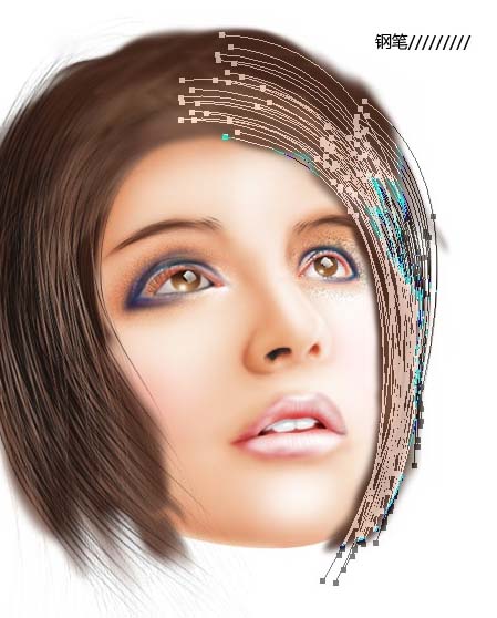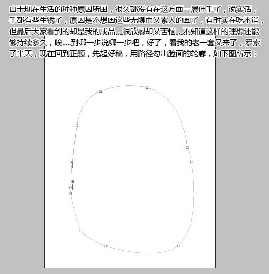 1.先畫好稿用鋼筆工具勾出臉面的輪廓如下圖。