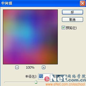 14、執行菜單欄中的“濾鏡”“雜色”“中間值”命令,在彈出的對話框中設置參數如圖22所示,圖像效果如圖23所示。