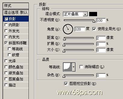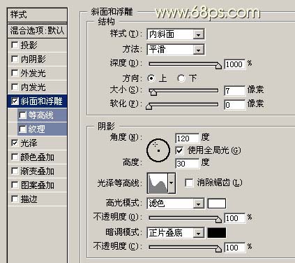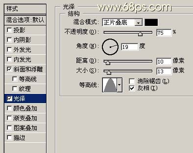4.回到文字圖層雙擊圖層調(diào)出圖層樣式參數(shù)設(shè)置如圖7,8,效果如圖9。