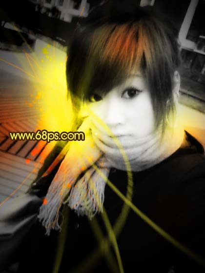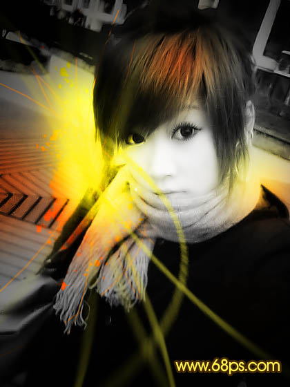 純粹的黑白照片看起來有點單調,如果我們適當的點綴一些合適的色彩,照片就感覺比較生動。色塊可以使用筆刷繪制自己喜好的一些圖形。顏色可以自己任意選擇!