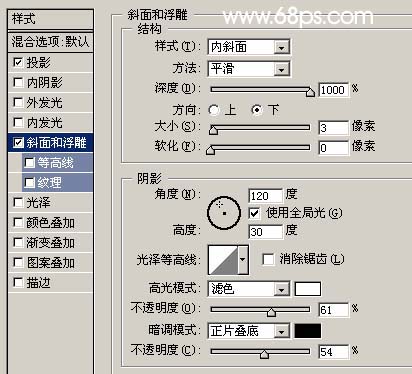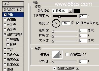 2、雙擊圖層調(diào)出圖層樣式,參數(shù)設(shè)置如圖2-3,效果如圖4。