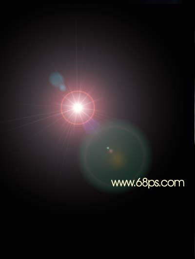 8、新建一個(gè)圖層填充為黑色,執(zhí)行菜單:濾鏡 > 渲染 > 鏡頭光暈,數(shù)值自己把握,效果如圖8。