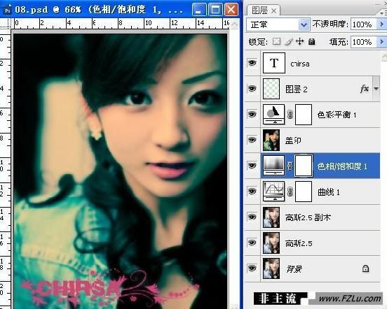 3、建立“曲線”、“色相/飽和度”調(diào)整層,調(diào)整到自己滿意