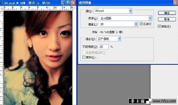6、選中綠色通道,選中藍(lán)色通道,圖像-應(yīng)用圖像,設(shè)置如圖