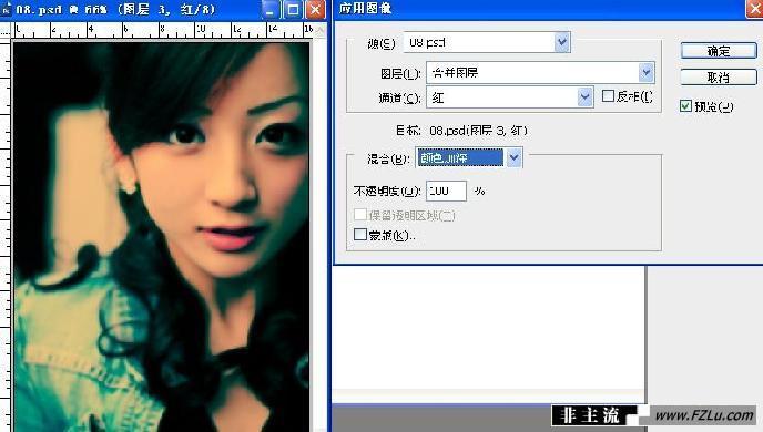 7、選中紅色通道,圖像-應(yīng)用圖像,設(shè)置如圖