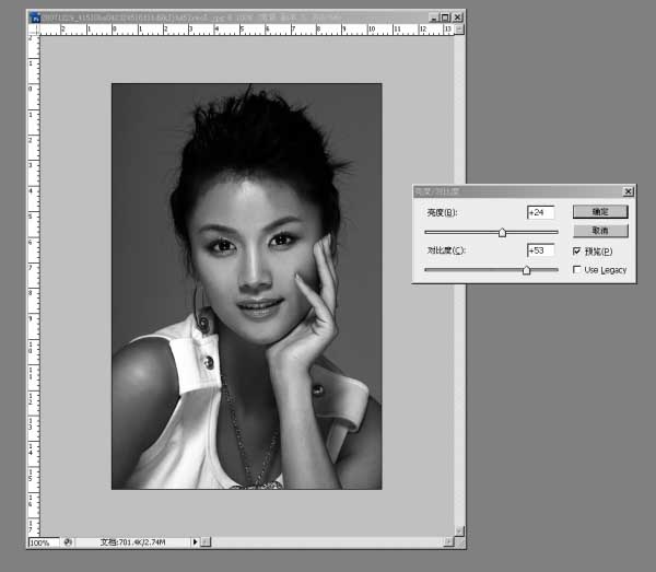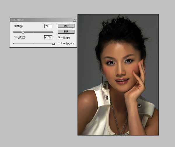 2.調整圖層二的亮度和對比度。如圖: 更多photoshop照片處理教程