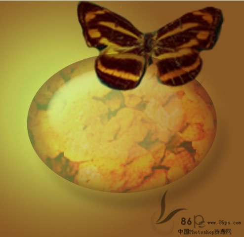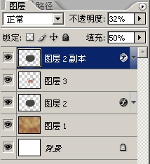 9、把蝴蝶拖到橢圓圖層上,將橢圓層ctrl+j復制一層,放于蝴蝶層之上,設置不透明度32%和填充50%,調整安放位置