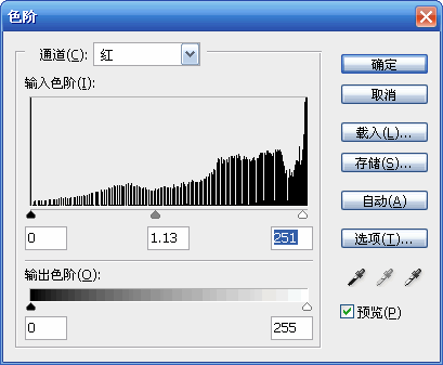 ctrl+l調(diào)出色階,對各通道參數(shù)進(jìn)行微調(diào),如圖