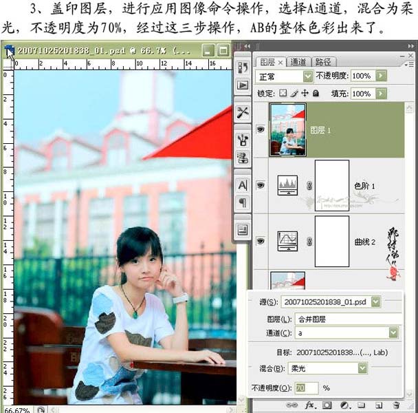 前面文章介紹了photoshop教程:簡易的阿寶色調制教程,本photoshop教程介紹防阿寶色的制作方法。同樣是在ab模式下操作,不過作者用到的是曲線及應用圖像等操作來實現阿寶色的制作。制作的方法同樣非常簡單。