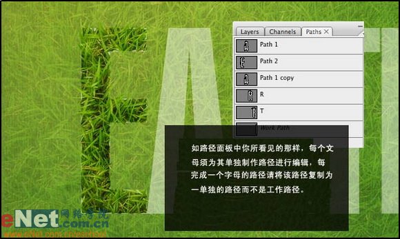 10.為了便于調整,當你每做完一個文字中的字母路徑的時候請雙擊路徑其中的一個工作路徑將其保存為單獨的一個路徑,如下圖所示: