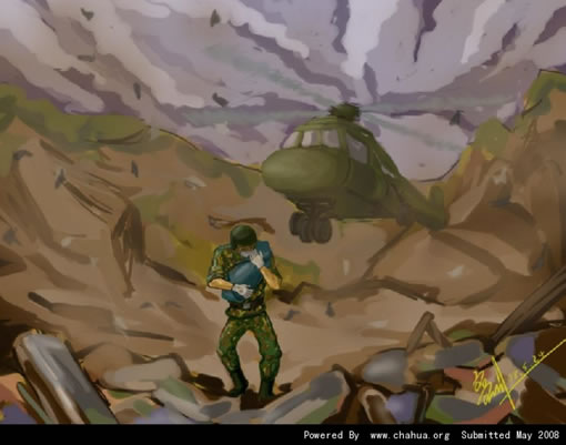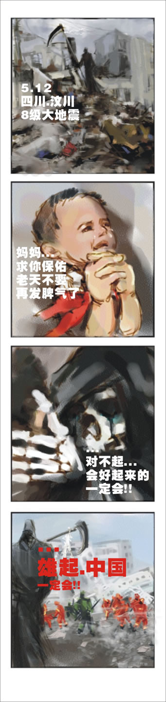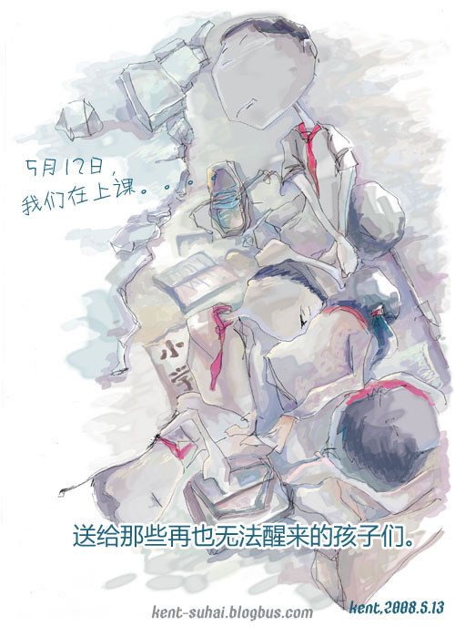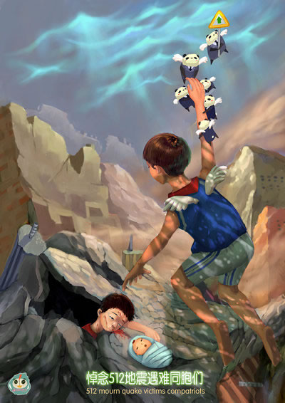 緊接上一系列作品:祈福:插畫師用畫筆繪5.12地震主題插畫
