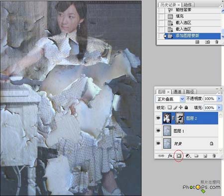 8、轉到圖層面板,給圖層2添加蒙版,(按紅圈所指圖標),廢話一下這里蒙板的使用跟在第三步的時候直接加蒙板用黑筆涂出是一個道理,不過這用了通道建立選區使得我們要涂的地方更明朗些,即可得如下圖效果: