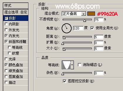 3、雙擊圖層調出圖層樣式,參數設置如圖4-7,效果如圖8。