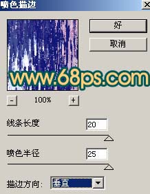 2、新建一個圖層,按ctrl + alt + shift + e蓋印圖層,確定后執行菜單:濾鏡 > 畫筆描邊 > 噴色描邊,參數設置如圖2。確定后加上圖層蒙版,用黑色畫筆把人物部分擦出來,效果如圖3。
