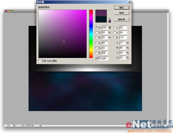 6.在保持選擇的情況下按ctrl+j復制選區中的像素使其單獨成為一新圖層,這次用#552a58色填充新圖層。如下圖所示: