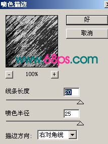 3、新建一個圖層按ctrl + alt + shift + e蓋印圖層,按ctrl + shift + u去色,然后執行菜單:濾鏡 > 畫筆描邊 > 噴色描邊,參數設置如圖3,確定后加上圖層蒙版,用黑色畫筆把人物部分擦出來,效果如圖4。