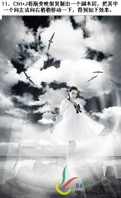 | 11、ctrl + j將漸變映射調整圖層復制一份,把其中一個稍微水平移動一下。效果如下圖。 |