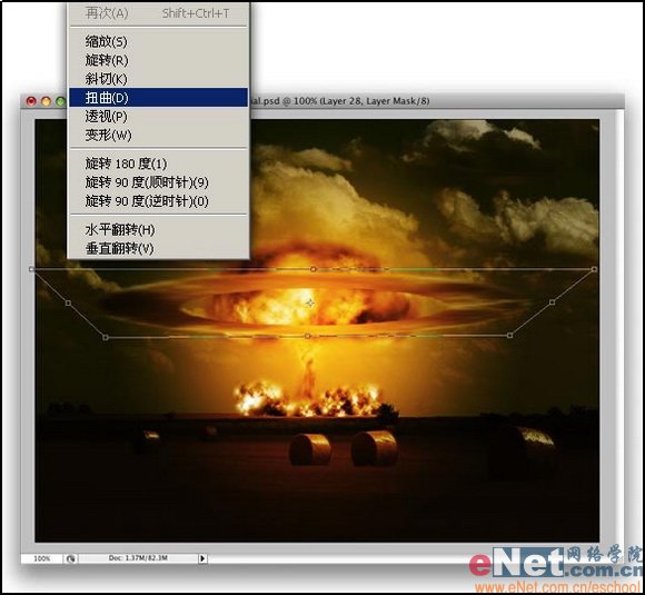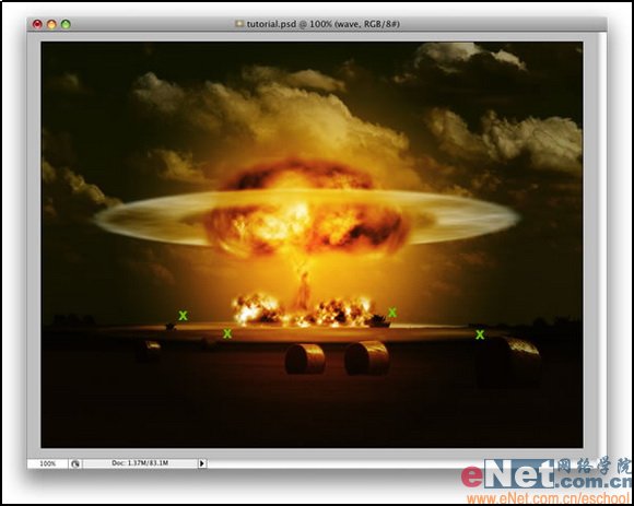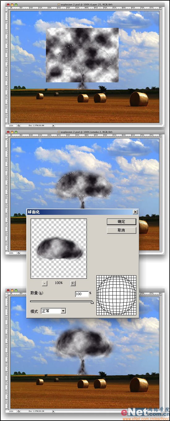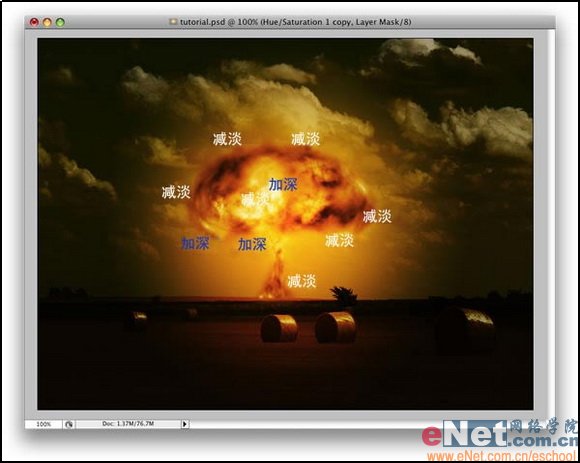 11.現在再用加深減淡工具處理下蘑菇云的高光與暗調部分以加強真實感。