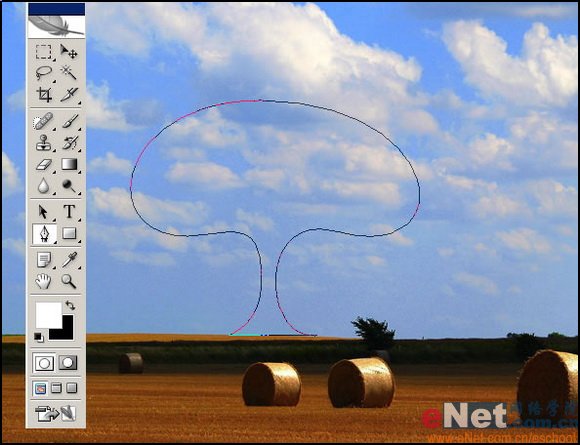 2.建立一新圖層并命名為"first smoke",然后用鋼筆工具創建如下圖所示的路徑。