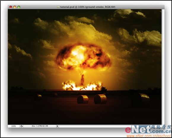 用photoshop來制作爆炸和火焰效果的時候步驟總是有些繁瑣,今天我就教朋友們用另類方法來制作集這2者與一身的核彈爆炸效果………
