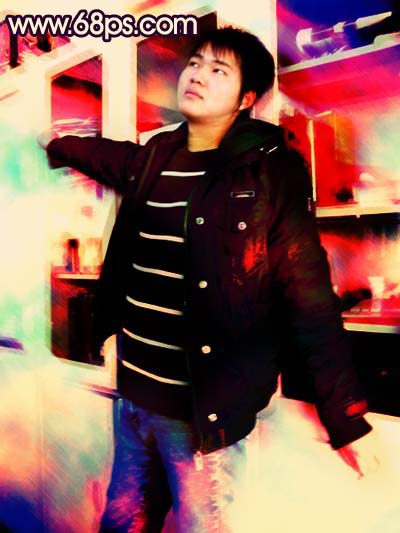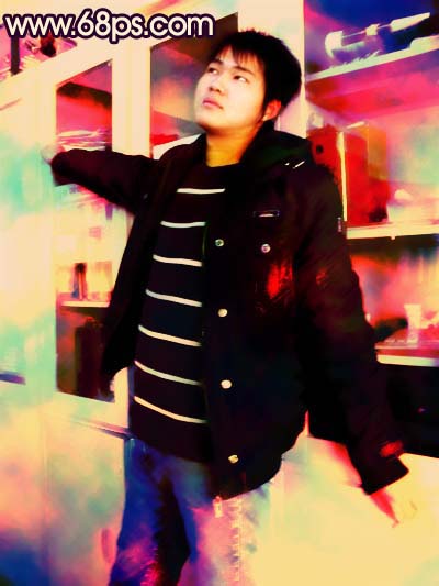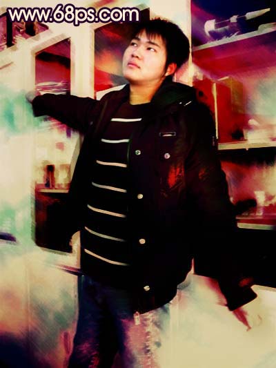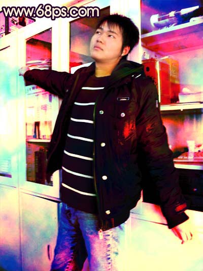 1、打開原圖按ctrl + j復制一層,把前景色設置為:#fb055c,背景顏色設置為:#046978,然后執行菜單:濾鏡 > 渲染 > 分層云彩,確定后把圖層混合模式改為“顏色減淡”,加上圖層蒙版把人物部分用黑色畫筆擦出來,效果如圖1。