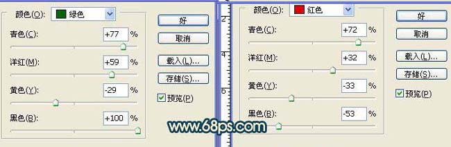 3.創(chuàng)建可選顏色調整圖層,參數設置如下圖