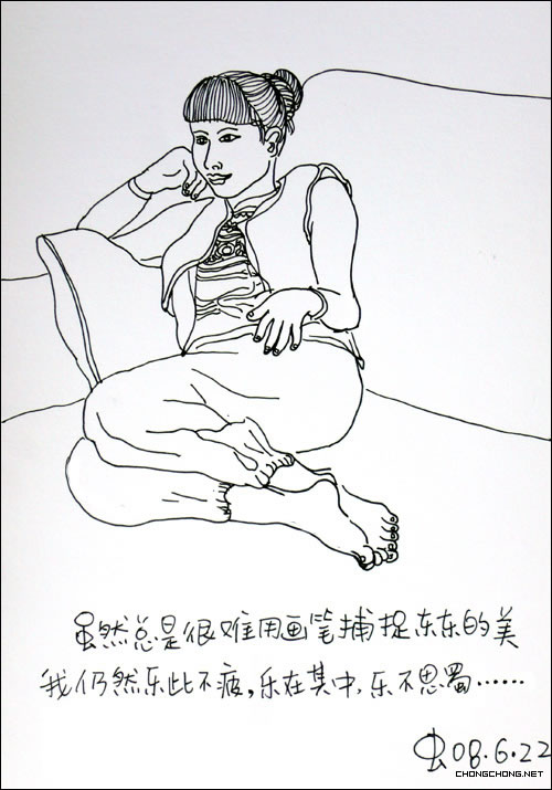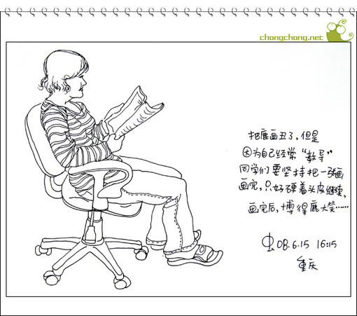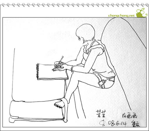 5.畫(huà)好友兼“學(xué)生”茉茉。茉茉說(shuō)自己拿著一把鉛筆,像個(gè)畫(huà)家似的。還記得看茉茉第一次畫(huà)畫(huà)時(shí),很鼓勵(lì)地問(wèn):畫(huà)得不錯(cuò)啊,是不是以前上美術(shù)課時(shí)就對(duì)畫(huà)畫(huà)有興趣。人家認(rèn)真思考半天,遺憾地回答:沒(méi)有也。沒(méi)有興趣的同學(xué)都能畫(huà)這么好,再次驗(yàn)證人人都可以畫(huà)畫(huà)的小理論。^_^