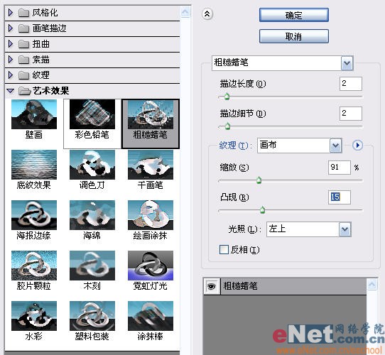 再?gòu)?fù)制一次背景層,對(duì)該層執(zhí)行“濾鏡”-“藝術(shù)效果”—“粗糙蠟筆”