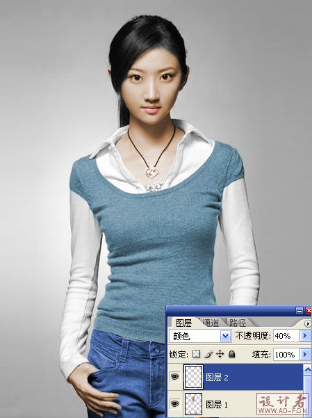 5、同樣,用選擇工具將衣服選擇起來,用之前的方法新建調整圖層為衣服著色。