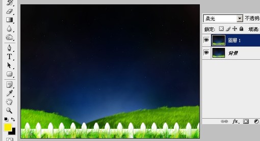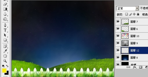 因為有朋友要求弄,就做了一個,和上次一樣,筆刷亂刷的 ,星星也好草地也好橡皮的運用也好。