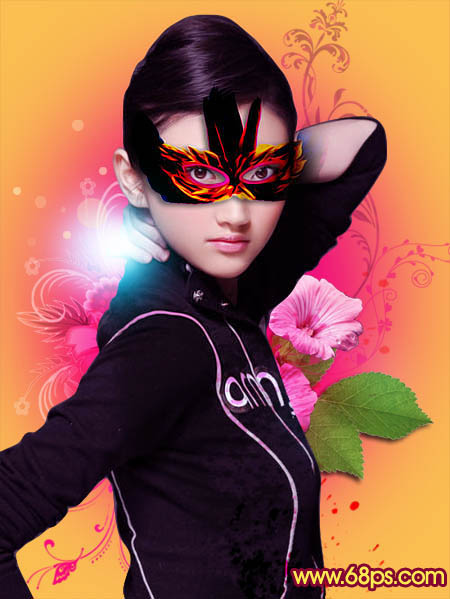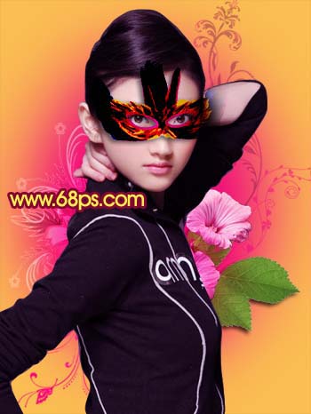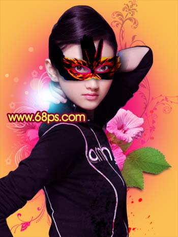 <圖9> 6、把素材中的羽毛面具勾出來,拖進來,放到人物的眼睛上,適當的調整號大小,再加點投影,然后把圖層混合模式改為“顏色加深”,確定后按ctrl + j復制兩層,效果如圖10。