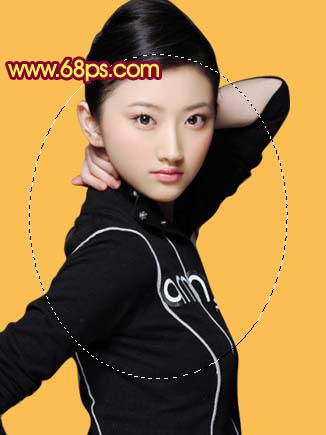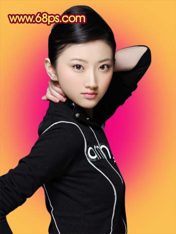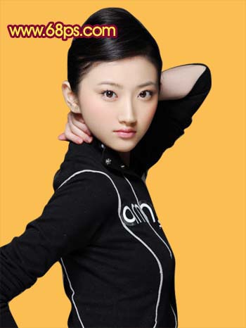 1、打開原圖把人物勾出來,然后把背景填充顏色:#fabe52,效果如圖1。