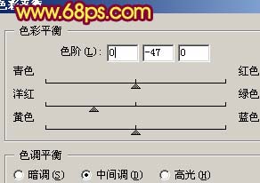 5、回到人物圖層,按ctrl + b調色彩平衡,參數設置如圖8,效果如圖9。