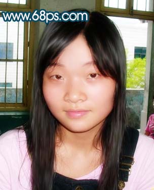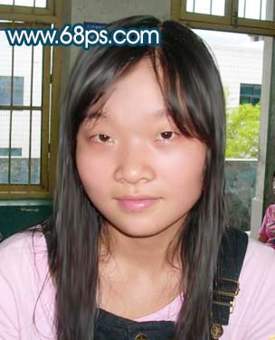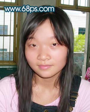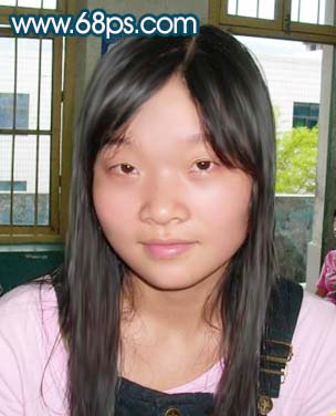 <圖2> 3、新建一個圖層蓋印圖層,這一步把人物額頭上多余的頭發去掉,用習慣吸取頭發附近皮膚的顏色,然后用畫筆涂抹即可,效果如圖3。