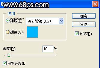 7、創(chuàng)建一個(gè)圖層,蓋印圖層,選擇:圖象 > 調(diào)整 > 照片濾鏡,數(shù)值如圖,確定后把圖層不透明度為:60%。