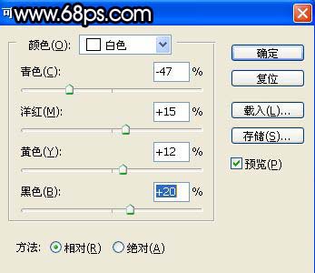 11、創(chuàng)建一層,選擇菜單:圖象 > 調(diào)整 > 可選顏色,參數(shù)設(shè)置如下圖,確定后再整體修飾下,完成最終效果。