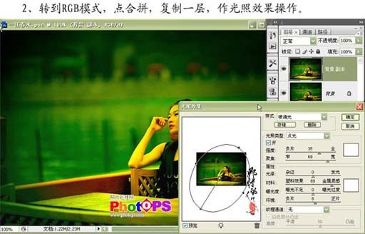 2、選額菜單:圖像 > 模式 > rgb模式,點合拼,再按ctrl + j復制一層,執行:濾鏡 > 渲染 > 光照效果,參數設置如下圖。