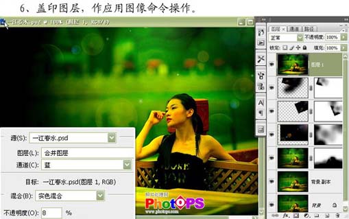 6、新建一個圖層,按ctrl + alt + shift + e蓋印圖層,選擇菜單:圖像 > 應用圖像,參數設置如下圖。