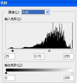 第八步、加暗角,建立“色階”調整層,設置如下,用大號黑色柔角畫筆在蒙板中以人物為中心擦一下即可,第一步所提到的問題在這里應該很明顯。最后新建一層,蓋印,然后磨皮、銳化、加字,完成。(用neatimage外掛和usm銳化,效果很不錯。)