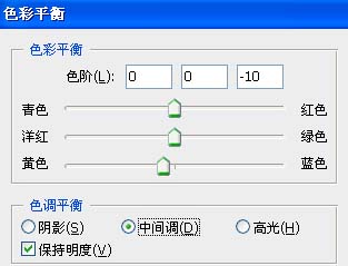 第七步,建立一個“色彩平衡”調整層,設置如下。
