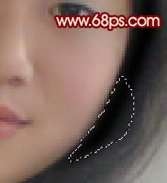 <圖3> 4、新建一個圖層,用鋼筆工具勾出圖4所示的選取,按ctrl + alt + d羽化,數值為3,填充黑色,這樣臉就顯得尖一點。