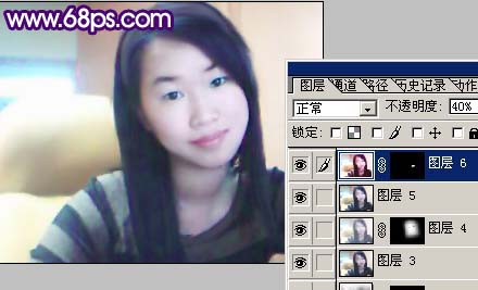 <圖3> 3、新建一個圖層,蓋印圖層,把圖層混合模式改為“濾色”,圖層不透明度改為:40%,加上圖層蒙版,紙保留臉部位置,其它的地方用黑色畫筆擦掉。