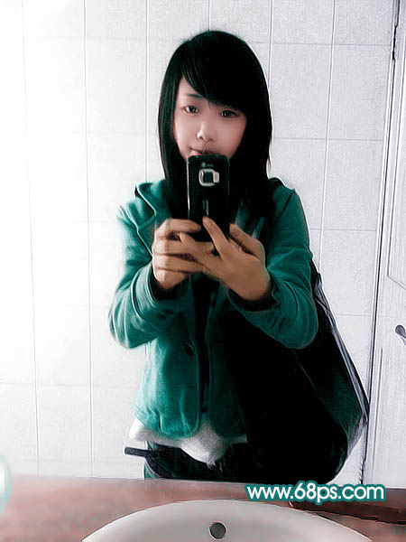<圖8> 7、新建一個(gè)圖層,圖層混合模式改為“疊加”,把前景色設(shè)置為:#127473,然后用畫(huà)筆把衣服部分涂出來(lái),效果如圖9。