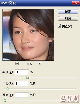 3、適當銳化圖像,執行銳化-usm銳化,參數如圖所示: