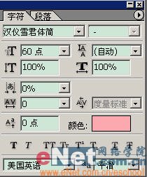 四、前景色設置成ffa7ae,用橫排文字工具(快捷鍵t),輸入文字,文字大小見[圖4],圖層效果見[圖5];