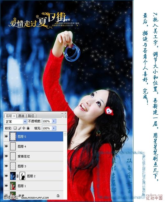 7、拖入美工字,調節大小和位置,新建一層,用星星筆刷點幾下,最后,描邊與否,看個人喜好。